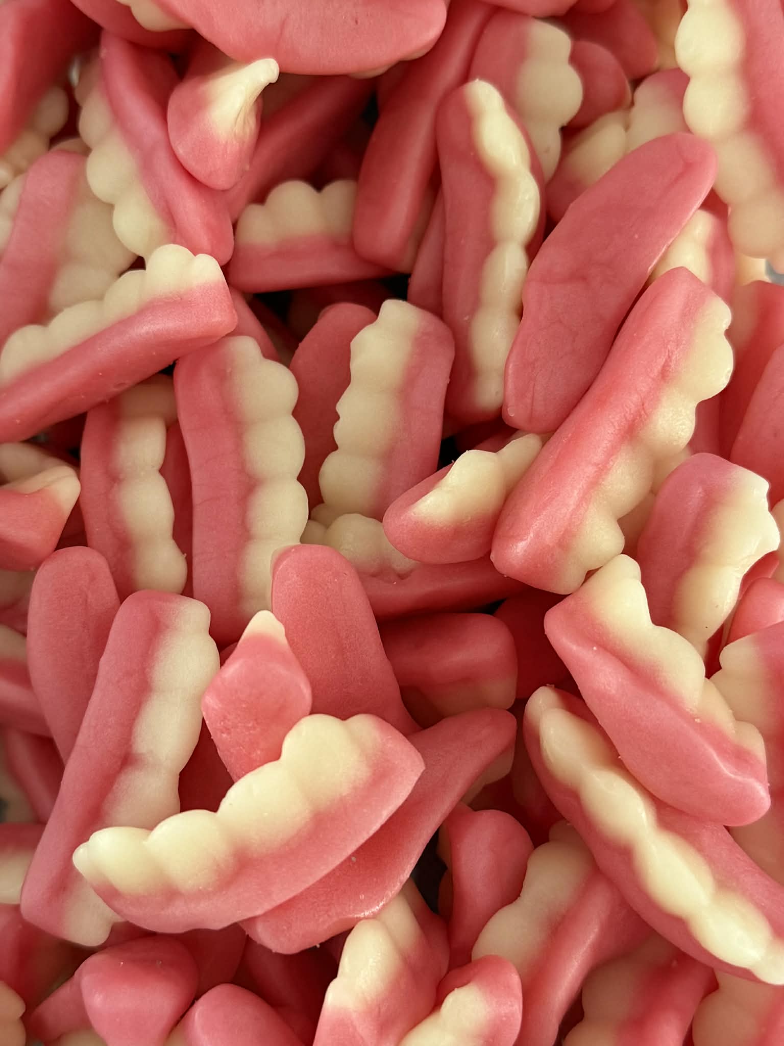 ingrédients : Sirop de glucose, eau, sucre, amidon, gélatine de bœuf, acidifiant : acide citrique, régulateur d'acidité : citrate de sodium, agent d'enrobage : cire de caranuba, colorant E120. sans gluten
